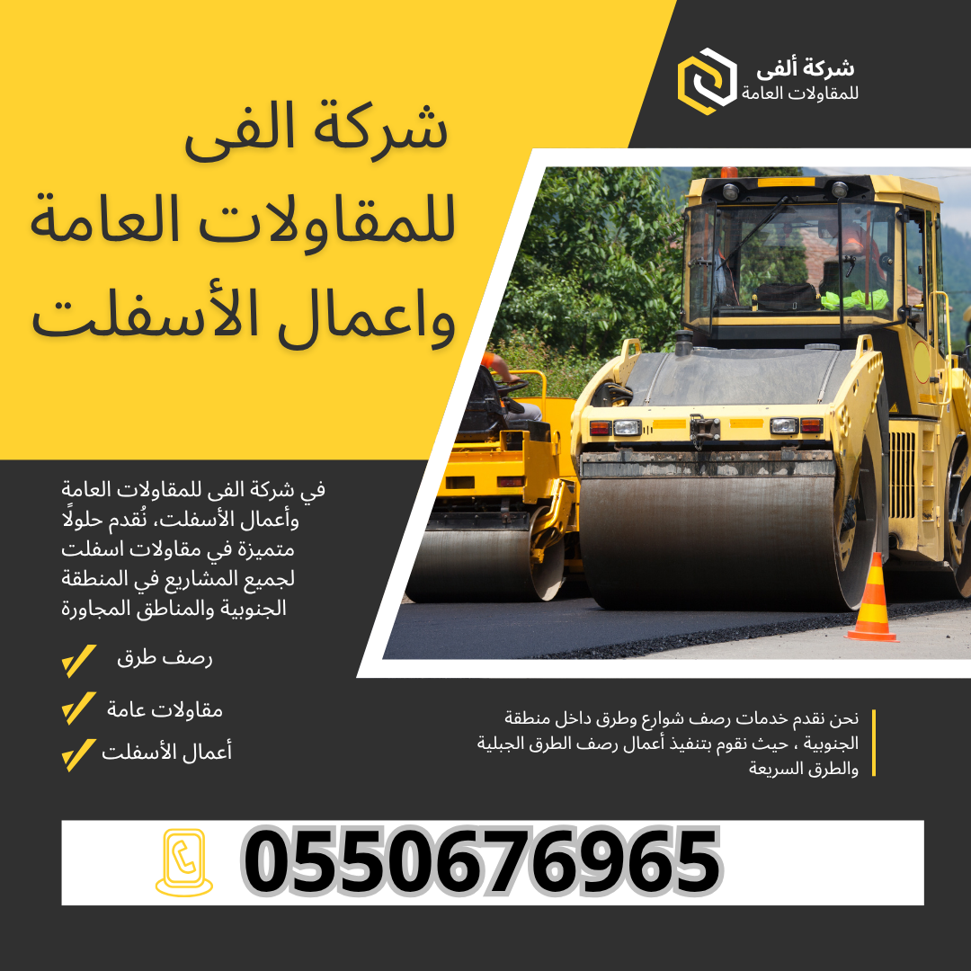 مقاول اسفلت محترف يقدم خدمات رصف وصيانة الطرق والمواقف بجودة عالية، معدات حديثة، وفريق عمل متخصص يضمن تنفيذ المشاريع بسرعة ودقة ووفق المواصفات المطلوبة.